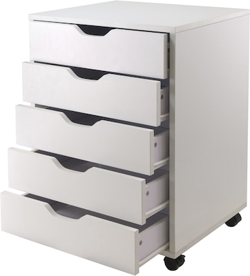 Winsome halifax storage cabinet having white finish is designed specially for closet or office requirements to store your favorite accessories and storage fills features 5 drawers with cut out drawer pull.